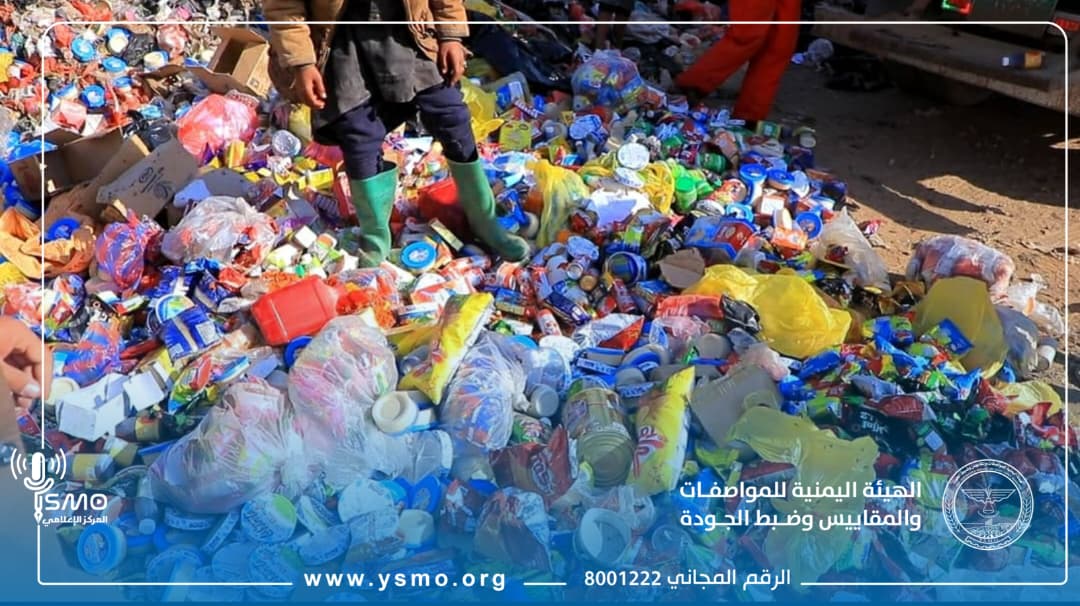 صعده : فرع هيئة المواصفات بصعدة يتلف كميات من السلع الغذائية المخالفة للمواصفات القياسية