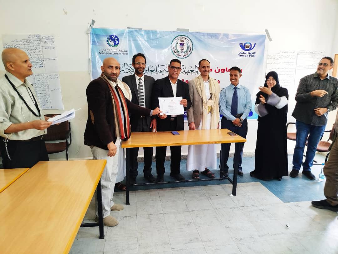 صنعاء: صندوق تنمية المهارات ومعهد العلوم الإدارية يختتمان برنامج "سلاسل الإمداد" لكوادر هيئة البريد.