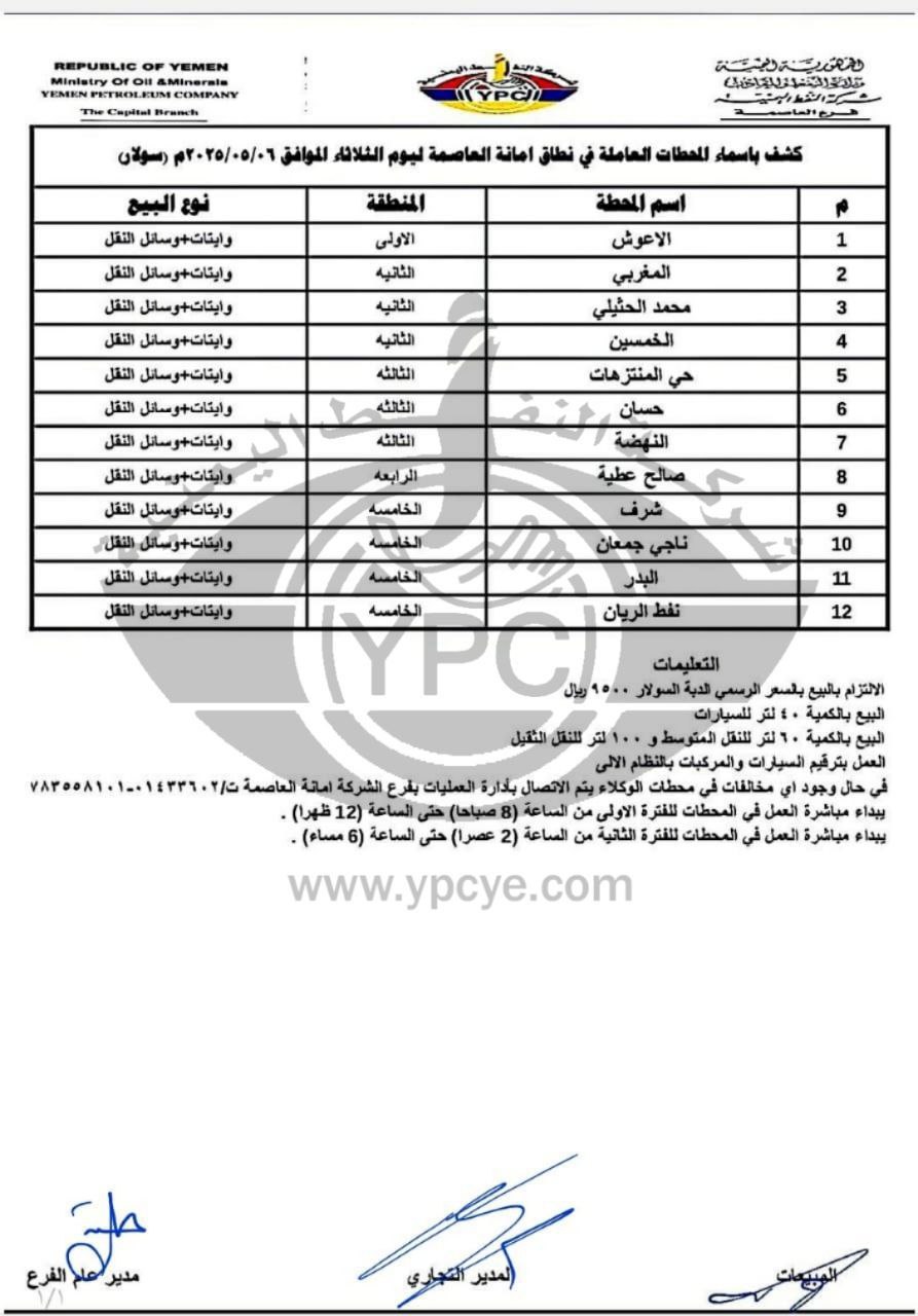 في ظل المستجدات الطارئة، اضطرت شركة النفط اليمنية إلى تفعيل خطة الطوارئ في محطات الوقود، وذلك بهدف إدارة المخزون المتاح حاليًا بشكل مؤقت، إلى حين تمكن السفن من الرسو على الأرصفة واستئناف عمليات التفريغ.