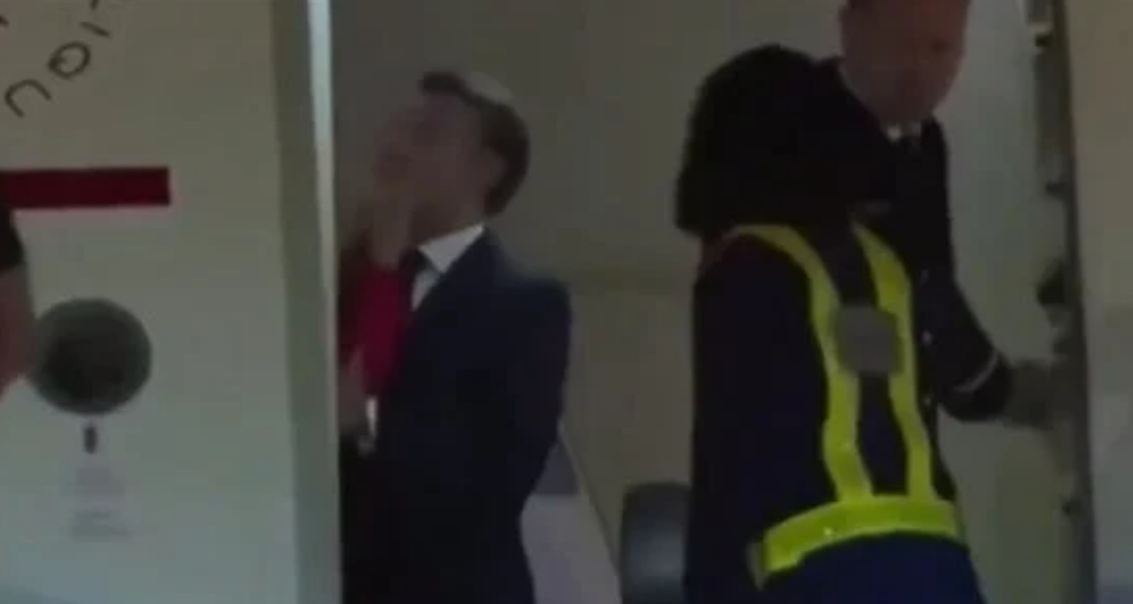 وبدت على ماكرون الدهشة من تصرّف زوجته، لكنّه استدرك الأمر وغادر الطائرة وهو يبتسم ويلوّح للكاميرات.