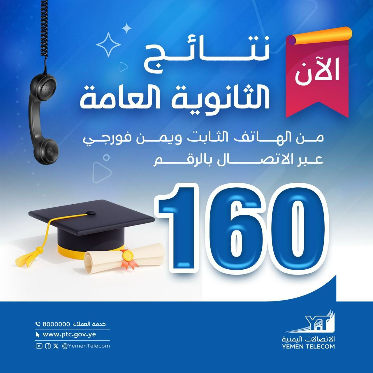 الان عبر يمن موبايل او اي خط هاتف جوال او ثابت يمكنكم الحصول على نتائج الثانوية وذلك من خلال إرسال رقم الجلوس برسالة نصية على الرقم 160