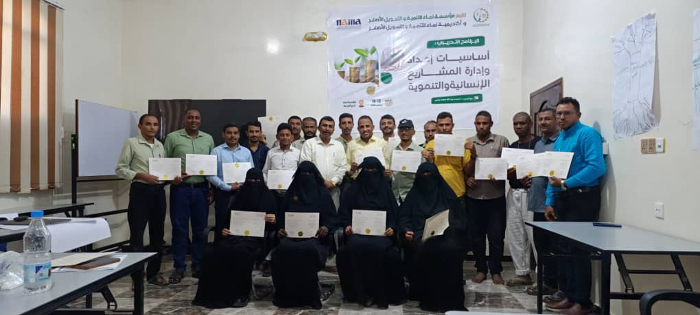 مؤسسة "نماء" تختتم برنامجاً تدريبياً في إعداد وإدارة المشاريع الإنسانية والتنموية لفرع الزيدية بمحافظة الحديدة