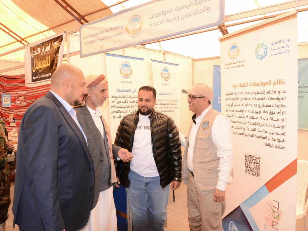 كما زار جناح الهيئة اليمنية للمواصفات والمقاييس وضبط الجودة، واستمع من الفريق التوعوي المشارك إلى شرح حول المهام التوعوية والإرشادية التي ينفذها الفريق، ودوره في رفع مستوى الوعي لدى المستهلكين بأهمية اختيار السلع المطابقة للمواصفات والمعايير المعتمدة.