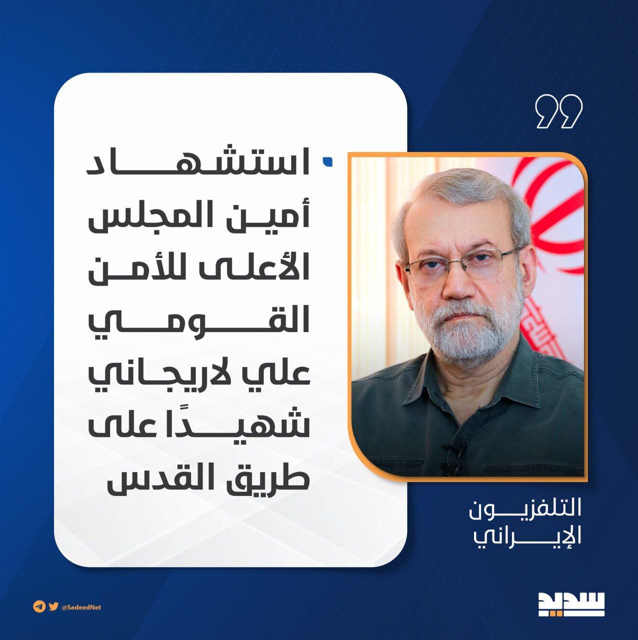 التلفزيون الإيراني: علي لاريجاني أمين المجلس الأعلى للأمن القومي الإيراني، التحق بإمام الشهداء