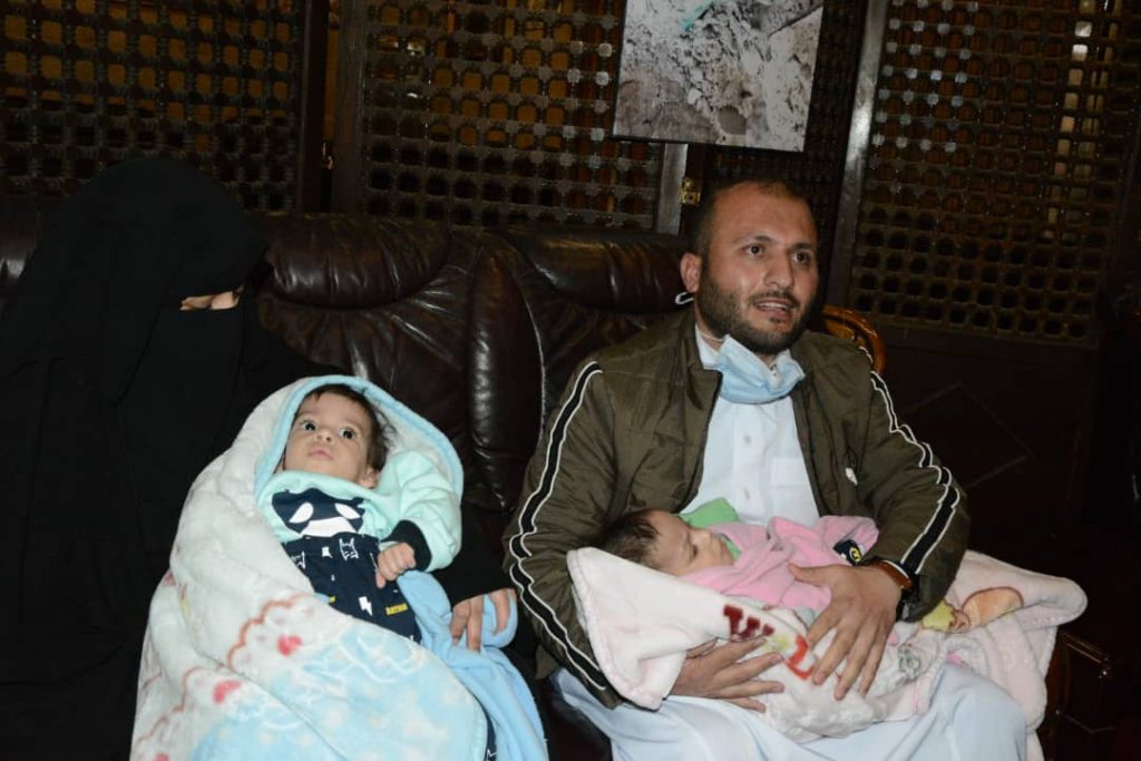 عاد إلى مطار صنعاء الدولي، اليوم الخميس ، الطفلان التوأمان السياميان محمد وأحمد البخيتي برفقة والديهما، قادمين من المملكة الأردنية الهاشمية بعد رحلة علاجية دامت 11 شهراً، تم فصلهما بعملية جراحية معقّدة في الأردن.