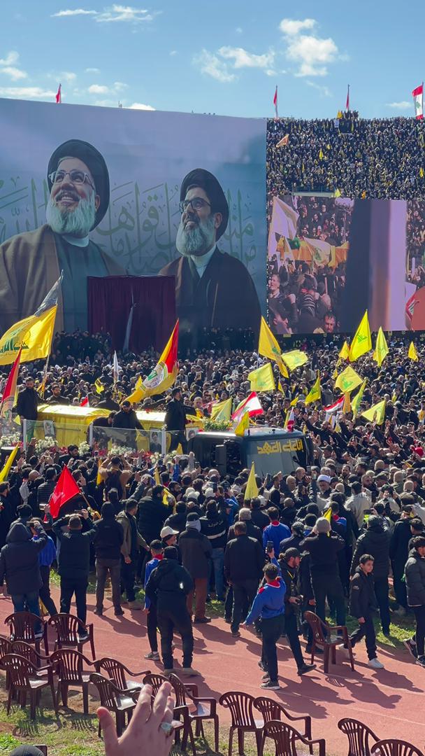 السلام عليكم أيها الوفود من كل أنحاء العالم وكل المجتمعين في هذه المناسبة لتشييع الشهيدين السيدين نصرالله وصفي الدين.