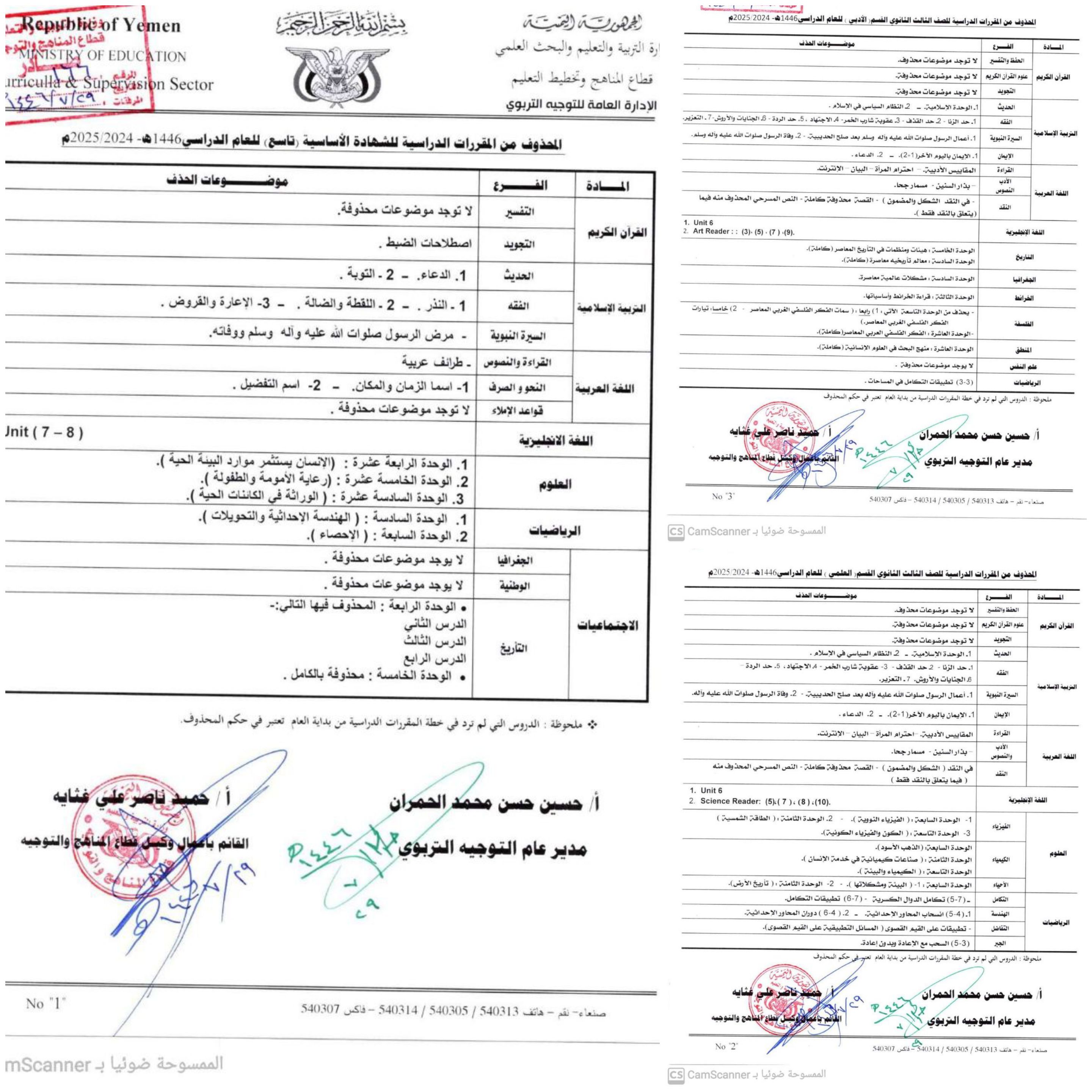 محذوفات تاسع اساسي ومحذوف ثالث ثانوي ادبي وثالث ثانوي علمي ل١٤٤٦ه 2025م