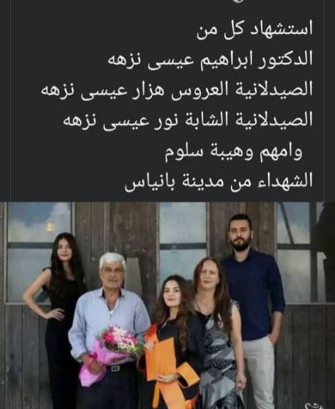 مقتل عائلات كاملة بإطلاق الرصاص المباشر في بانياس واللاذقية جلها أبناءها من الأطباء والصيادلة.