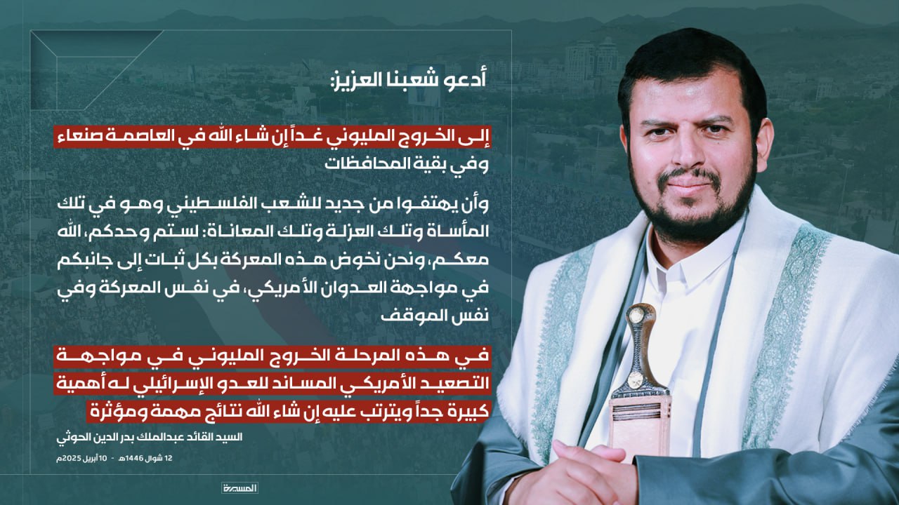 السيد  عبدالملك بدرالدين الحوثي حول آخر تطورات العدوان على غزة وآخر المستجدات الإقليمية والدولية - ١٢ شوال ١٤٤٦هـ | 10 أبريل 2025م:
